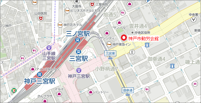 | JR・阪急・阪神・地下鉄 各三宮駅から東へ徒歩5分 | |